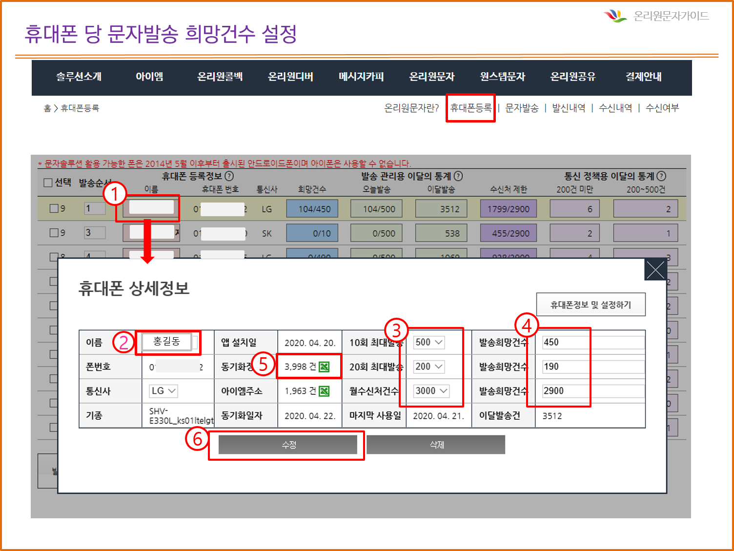 문자 [온리원문자] 발송건수 및 수신처수 직접 설정 2020-04-22 42462