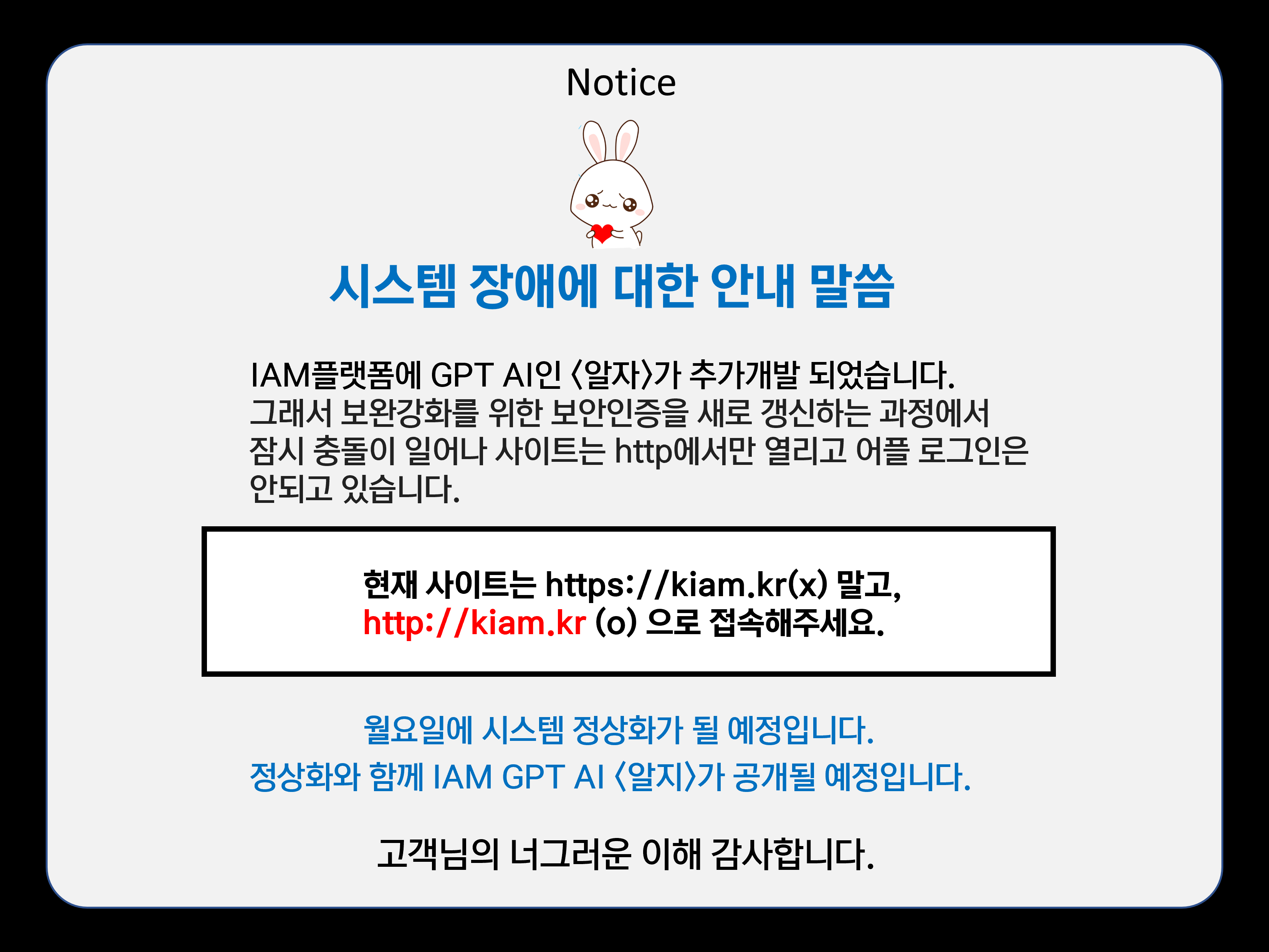 전체 [공지 제230306-02호] IAM플랫폼 시스템 정상화 공지 2023-03-06 20536